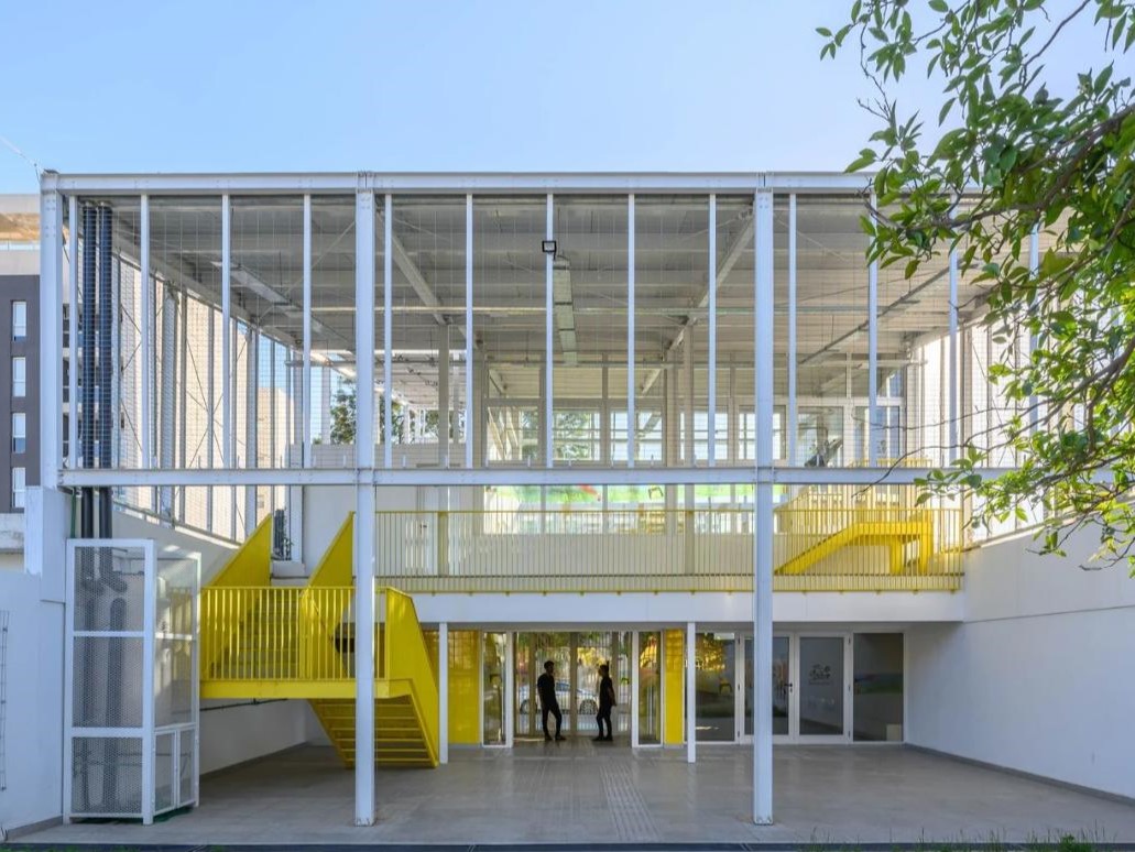 El premio, el reconocimiento se da por varios motivos. Por un lado, es un proyecto que surge en tiempos de pospandemia, donde a través de una necesidad de higiene y seguridad, de circulaciones y de mejorar el flujo de personas, es que a raíz de esto el colegio compra un terreno y encomienda al estudio el proyecto que tiene que ver con reorganizar la estructura circulatoria del jardín, generar un nuevo ingreso y darle una nueva fachada al jardín.
