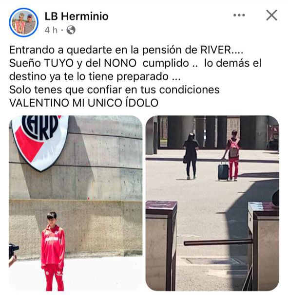 El joven futbolista, Valentino Martín, surgido del club Alumni y fanático de River Plate, fue seleccionado para realizar una prueba en el club millonario y esta semana se encuentra alojado en la pensión oficial de la institución, donde participa de los entrenamientos y convive con otros juveniles del semillero.